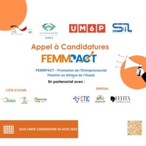 FEMMPACT est un programme de coopération triangulaire initié par le Royaume du Maroc et le Gouvernement Fédéral Allemand, en partenariat avec l'AMCI, la GIZ allemande, et le SIL de l’UM6P. Il vise à promouvoir l'entrepreneuriat féminin en Afrique de l'ouest avec des incubateurs sénégalais (FENTA, CERIP, CTIC) et ivoiriens (INCUB'IVOIR, Agence Emploi Jeunes, Dream Factory).