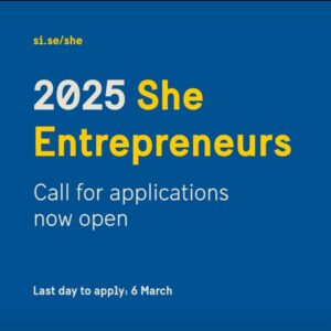 Organisé par l’Institut suédois, She Entrepreneurs est un programme de leadership intensif destiné aux femmes entrepreneures du Moyen-Orient et d’Afrique du Nord qui développent des entreprises à fort impact dans des secteurs tels que l’eau, l’énergie, l’alimentation, l’économie circulaire, la fabrication, les infrastructures et le transport.