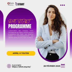 L’Association des Femmes Chefs d’Entreprises du Maroc (AFEM) lance le programme She Start, une initiative dédiée à l’accompagnement des femmes porteuses de projets au Maroc. Ce programme a pour ambition de stimuler l’entrepreneuriat féminin en offrant un soutien stratégique aux entrepreneures innovantes.