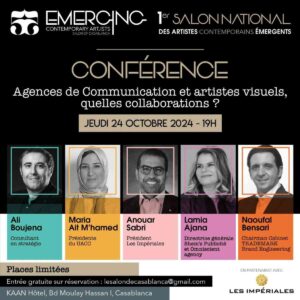 Le salon national des artistes contemporains émergents, en partenariat avec Les Impériales ont organisé une conférence exceptionnelle sur le thème "Agences de communication et artistes visuels: quelles collaborations pour demain?". Cet événement a réuni des experts de renom du secteur artistique et de la communication pour discuter des perspectives d'avenir et des opportunités de collaboration entre ces deux domaines.