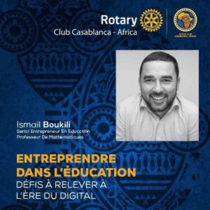 Ismaïl Boukili, entrepreneur et expert en EdTech, interviendra en tant que conférencier invité par le Rotary Club Casablanca Africa. Il abordera le thème crucial de "Entreprendre dans l’éducation : défis à relever à l’ère du digital", mettant en lumière les défis et les opportunités offerts par le digital pour transformer l'apprentissage.