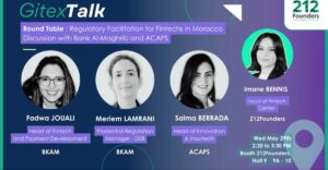 L'événement Fintech Center by 212Founders, dans le cadre des GITEX Talks, se prépare à vous accueillir pour une discussion passionnante sur la "Facilitation Réglementaire pour la Fintech au Maroc". Cette première Table Ronde réunira des régulateurs influents de Bank Al-Maghrib et de l'ACAPS pour débattre des évolutions et des défis réglementaires auxquels font face les Fintechs marocaines.