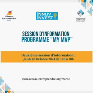 Le jeudi 3 octobre 2024 de 17h à 18h, Réseau Entreprendre Maroc, en partenariat avec TAMWILCOM, organise une session d'information dédiée à ceux qui souhaitent s'engager bénévolement auprès des jeunes porteurs de projets. Cette session d'information du programme MY MVP a pour but de réunir des personnes prêtes à offrir de leur temps et à partager leur expertise pour challenger et accompagner les entrepreneurs en phase de développement.
