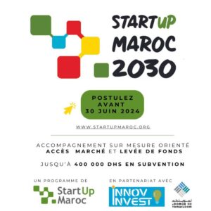StartUp Maroc, en partenariat avec InnovInvest, lance StartUp Maroc 2030, un programme d’accompagnement sur mesure destiné aux startups à fort potentiel. Ce programme a pour objectif de soutenir la croissance des startups marocaines en leur offrant un accès privilégié au marché et en facilitant leur levée de fonds. Aligné avec les objectifs stratégiques du Maroc pour 2030, StartUp Maroc 2030 vise à transformer les visions entrepreneuriales en réalités tangibles et durables.