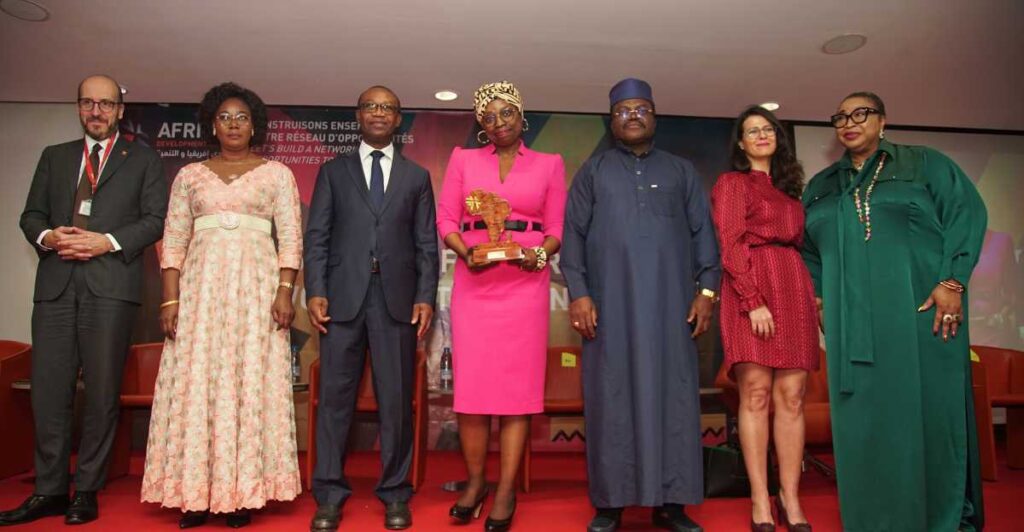 Au cours de cette cérémonie, Mme Nelly CHATUE DIOP, CEO de EJARA, a reçu le troisième trophée SUFAWE pour son parcours exceptionnel et son engagement au service de la création de valeurs partagées. Elle rejoint les deux ambassadrices SUFAWE, Mme Kate FOTSO, PDG de Telcar, Cocoa (SUFAWE2019), et Mme Nathalie BITHO, Présidente de la Chambre de Commerce et d’Industrie Togo (SUFAWE2023).